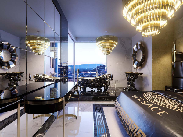 Особого внимания достойна ванна Newton Bathtub, которая выглядит одновременно футуристично и шикарно. Форма предмета обеспечивает комфорт использования. Изогнутая внутренняя поверхность выполнена из позолоченного литого железа. Внешняя сторона покрыта глянцевыми черными и золотыми сферами, определяющими скульптурность мебели.